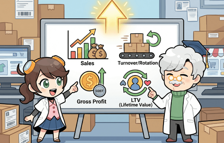 売上だけでなく、粗利・回転・LTVまで含めて見る。事業として強くなる指標を軸にする。